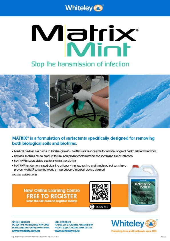 Whiteley is proud to support Infection Preventionists and Infection Control professionals by providing high-performance cleaning solutions, backed by internationally peer-reviewed data. Matrix® Mint is part of our commitment to improving patient outcomes through validated, science-driven protocols.