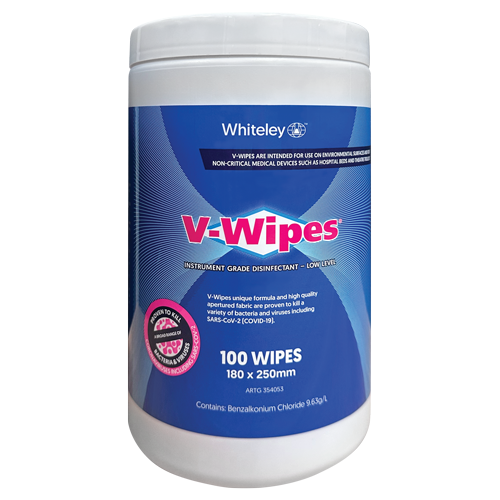 The unique formula of V-Wipes™ disinfectant wipes is proven to kill a broad variety of bacteria and viruses, including SARS-CoV-2 (COVID-19) Virus which is killed in 60 seconds. V-Wipes™ are an Instrument Grade Disinfectant – low level, and can be used on environmental surfaces and non-critical medical devices.